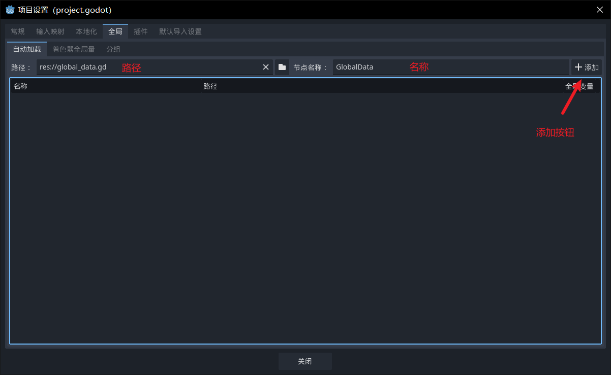 global_data.gd文件 - 在"节点名称"输入框中,输入一个全局访问的名称,例如